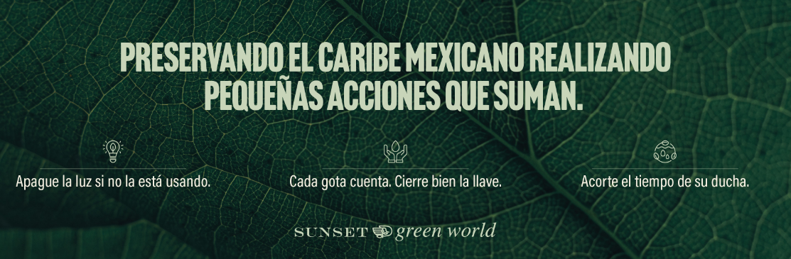 En Sunset World nos preocupamos por el medio ambiente y recomendamos a nuestros socios, huéspedes y compañeros de trabajo que adopten medidas concretas para cuidar recursos tan valiosos como el agua y la energía.