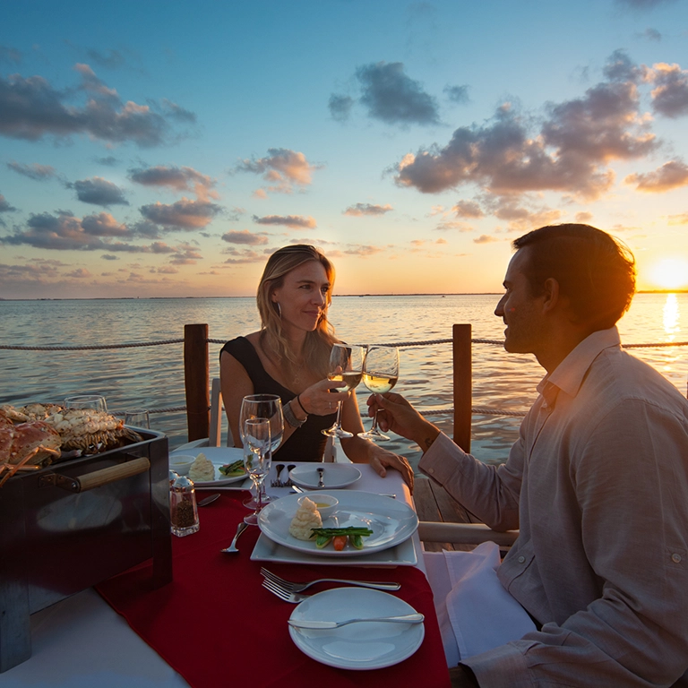 Imagine comenzar sus vacaciones en Sunset Royal, frente a la playa de arena blanca y el azul intenso del mar Caribe, y después trasladarse en Water Taxi o Transporte Interhoteles hacia Sunset Marina, donde el ritmo cambia para dar paso a la serenidad de la laguna Nichupté, atardeceres espectaculares y un ambiente ideal para la contemplación. A esto se suman propuestas culinarias variadas, ya que cada propiedad ofrece sabores, conceptos y experiencias gastronómicas que convierten cada comida en un viaje en sí mismo.